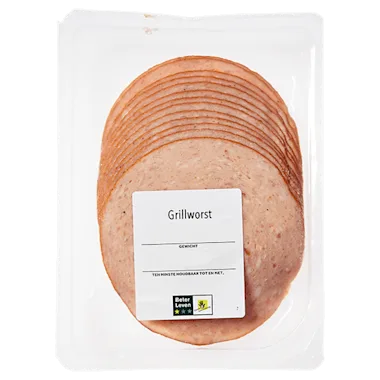 76% varkensvlees*, water, aardappelzetmeel, zout, zuurteregelaars: e261/e325/e326, glucosestroop, natuurlijk aroma, specerijen, stabilisator: e451, dieetzout (kaliumchloride), varkensspek*, gehydrolyseerd plantaardig eiwit (maïs, raapzaad, zonnebloem), antioxidant: e301, dextrose, gistextract, geconcentreerd rode bietensap, knoflookpoeder, conserveermiddel: e250, rookaroma.
