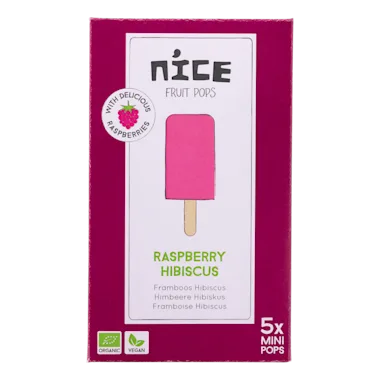 Ingrediënten: fruitijs: 63% hibiscusthee*, 20% frambozen*, rietsuiker*. *Biologisch Kan sporen van noten bevatten.