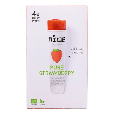 Ingrediënten: fruitijs: 70% aardbeien*, rietsuiker*, water, citroensap*. *Biologisch. Kan sporen van noten bevatten.