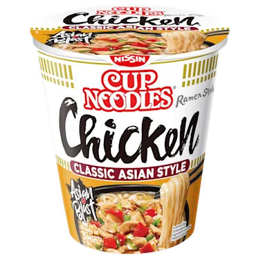 Ingrediënten: Noedels 85,6% [TARWEMEEL, palmolie, zout, smaakversterker (monotariumglutamaat), zuurteregelaars (natriumcarbonaten, citroenzuur), stabilisator (trifosfaten), antioxidant (tocoferolrijk extract)], zout, suiker, getextureerd tarweeiwit stukjes (TARWEGLUTEN, stabilisator (calciumsulfaat)], smaakversterkers (mononatriumglutam, natriumguanylaat, dinatriuminosinaat), glucosestrop, rode paprika, kippenvleespoeder 1.0% (kippenvlees, zout), shiitake paddenstoel, prei, aroma's (bevat TARWE, SOJA, SELDERIJ), knoflookpoeder, gehydrolyseerd maïseiwit, gemberpoeder, gistextract, specerijen, sojasauspoeder (SOJABONEN, TARWE, zout, maltodextrine), antiklontermiddel (siliciumdioxide), chilli, zuutteregelaar (citroenzuur). Kan sporen van SCHAALDIEREN, VIS, MELK, WEEKDIEREN, MOSTERD en SESAM bevatten.