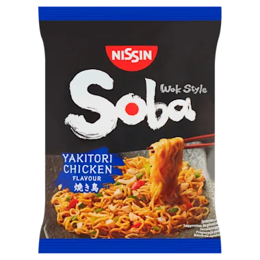 Ingrediënten: Noedels 82,0% [TARWEMEEL, palmolie, zout, meelverbeteraars (E500, E451), stabilisator (E501), verdikkingsmiddel (E412), antioxidant (E306)], Kruidensaus 17,3% [SOJASAUS (water, SOJABONEN, zout, TARWE), koolzaadolie, suiker, dextrose, smaakversterkers (E621, E635), kippenvet, uienpoeder, gehydrolyseerd maïseiwit, kleurstoffen (karamel, paprika-extract), kiparoma (1,0% in de kruidensaus ), aroma's, gemodificeerd zetmeel], lente-ui. Kan sporen van SELDERIJ, SCHAALDIEREN, VIS, MELK, WEEKDIEREN, MOSTERD en SESAM bevatten.