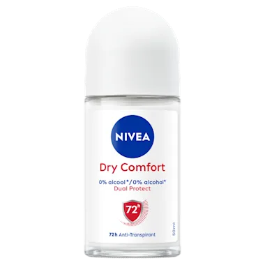 NIVEA Dry Comfort Anti-Transpirant biedt betrouwbare 72 uur bescherming tegen zweet, terwijl het je huid verzorgt, helemaal zonder ethylalcohol. Onze anti-transpiranten bieden Derma 72u Active Protection: onze producten werken samen met de huid voor betrouwbare en krachtige werking tegen zweet en geur, met huidvriendelijke formules.