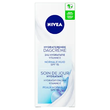 NIVEA Essentials Hydraterende Dagcrème SPF15 50ml hydrateert tot 24 uur intensief, waardoor het helpt het huideigen vochtgehalte in balans te brengen. De formule met NIVEA Hydraterend Care Complex, Vitamine E en Natuurlijk waterlelie-extract verfrist en vult de huid aan met snelle hydratatie. SPF30 biedt hoge bescherming tegen door zonlicht veroorzaakte invloeden en vroegtijdige huidveroudering. NIVEA Hydraterende Dagcrème SPF30 is geschikt voor de normale huid. Huidvriendelijkheid dermatologisch goedgekeurd.