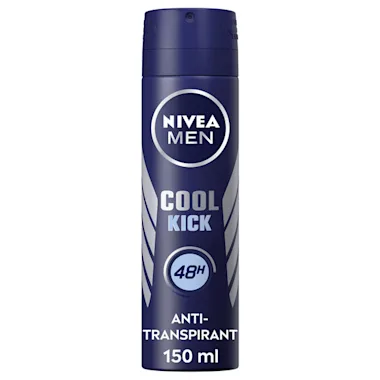 NIVEA MEN Cool Kick Quick Dry Anti-transpirant geeft een verkwikkende frisheid dankzij de Cool-Care formule. De formules bevatten geen ethylalcohol. Onze anti-transpiranten bieden Derma 72u Active Protection: onze producten werken samen met de huid, voor een betrouwbare en sterke doeltreffendheid tegen zweet en geur en met huidvriendelijke formules. Huidverdraagzaamheid dermatologisch bewezen.