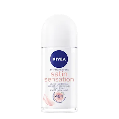 NIVEA Satin Sensation Anti-Transpirant Roll-on droogt snel en geeft je een zijdezacht huidgevoel, met kostbaar Kaolin-poeder. De formule bevat geen Alcohol. Onze anti-transpirants bieden Derma 72u Active Protection: onze producten werken samen met de huid voor betrouwbare en krachtige werking tegen zweet en geur, met huidvriendelijke formules. Huidverdraagzaamheid dermatologisch bewezen.