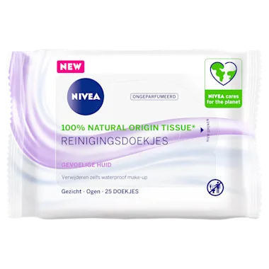 NIVEA 3in1 Zachte Reinigingsdoekjes 25 ST verwijderen doeltreffend zelfs waterproof make-up en mascara en alle sporen van onzuiverheden, reinigt met zorg en hydrateert zodat je huid verfrist wordt. Met 100% plantaardige doekjes. Huidvriendelijkheid dermatologisch oftalmologisch goedgekeurd. De NIVEA 3in1 Zachte Reinigingsdoekjes zijn speciaal ontwikkeld om effectief te reinigen terwijl ze zacht zijn voor je huid. Dankzij het SkinGentle Complex met Pro-Vitamine B5 & Hydramine zijn de 100% plantaardige doekjes zelfs geschikt voor de gevoelige huid. Voor een eenvoudige, effectieve en zachte ervaring die je huid er gezond en mooi uit laat zien, zelfs als tijd van wezenlijk belang is.