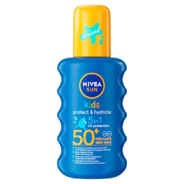 De NIVEA SUN Kids Protect & Care Gekleurde Spray SPF50+ biedt onmiddellijke UVA- en UVB-bescherming. Het houdt de tere kinderhuid gezond en helpt verbranding en UV-beschadiging op lange termijn te voorkomen. Het product is extra waterbestendig om actieve kinderen betrouwbaar te beschermen tijdens leuke momenten buiten. De verbeterde formule combineert ingrediënten zoals Panthenol, Vitamine E & C en is afgestemd op de huidbehoeften van kinderen. Het ondersteunt de beschermende barrière van de huid en voorkomt uitdroging van de huid. De formule heeft een verdwijnende kleur voor een gelijkmatige dekking. Trekt snel in! *Huidvriendelijkheid getest door kinderartsen en dermatologen
