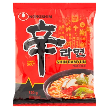 Ingrediënten: Noedels 89%: TARWEbloem, aardappelzetmeel, palmolie, zout, zuurteregelaar: E501, E500, E339, antioxidant: E306, emulgator: E322 (bevat SOJA), smaakmaker (gistextract, SOJAbonen, knoflook, TARWEzetmeel), groene thee-extract, kleurstof: E101. Kruidenpoeder 9%: smaakmaker (gehydroliseerd plantaardig eiwit (SOJA), maltodextrine, gistextract, zout, TARWEbloem), zout, smaakmakers (maltodextrine, zwarte peper, rode chili peper, knoflook, maïsmeel), smaakversterkers: E621, E627, E631, suiker, glucose, shiitake. Paddestoel groente vlokken 2%: paksoi, shiitake, getextureerde, plantaardige eiwitten (SOJA, TARWEGLUTEN), wortel, rode chili peper, ui,. Mag GERST, SCHAALDIEREN, EIEREN, VIS, PINDA'S, MELK, SELDERIJ, MOSTERD, SESAMzaad en WEEKDIEREN bevatten.