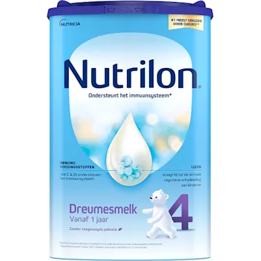 Gebaseerd op 120 jaar onderzoek in Nederland ontwikkelden onze Nutricia experts Nutrilon met Pronutra ™ ADVANCE, onze gepatenteerde volgende generatie flesvoeding, die het immuunsysteem en een normale hersenontwikkeling van je kindje ondersteunt*. * Nutrilon Dreumesmelk bevat de vitamines C en D, welke de werking van het immuunsysteem ondersteunen. Ook bevat het ijzer, dit ondersteunt een normale hersenontwikkeling. GEPATENTEERDE VOLGENDE GENERATIE FLESVOEDING met Pronutra™ ADVANCE Je vertrouwde Nutrilon Dreumesmelk is nu bereid met ons unieke en geavanceerde proces en bevat GOS:lcFOS. - Langeketen vetzuren omega-3 (DHA) - Vitamine C en D ondersteunen de normale werking van het immuunsysteem - Onze mix van vezels GOS:lcFOS en 3’GL oligosacharide - Onze gepatenteerde volgende generatie flesvoeding DHA Vitamine C en D Vezels GOS:lcFOS en 3’GL ONS UNIEKE PROCES