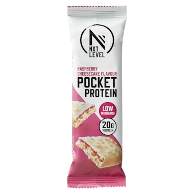 Eiwitreep met cheesecake-frambozensmaak en zoetstoffen
