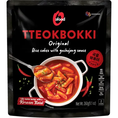 Ingrediënten: Rijstcake: Rijst 55% (Verenigde Staten), water, zout, zuurteregelaar: E330, alcohol; Saus: Suiker, rode peperpasta 7,8% (water, tapiocasiroop, bruine rijst, rode peperpoeder, zout, knoflook, ui), water, ui, zout, gistextract, alcohol, knoflook, smaakversterker: E627; E631, kleurstof: E160c, aroma, verdikkingsmiddel: E415, zwarte peperpoeder.