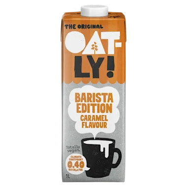 Schuimbare haverdrank, karamelsmaak, met toegevoegde vitaminen en calcium. UHT.