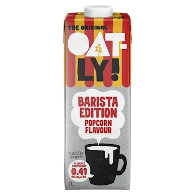 Schuimbare haverdrank, popcornsmaak, met toegevoegde vitaminen en calcium. UHT.