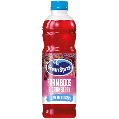 Cranberry, framboos vruchtendrank uit concentraat met zoetstof.