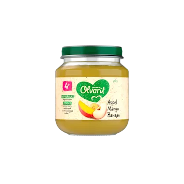 Ingrediënten :: 60% appel, 20,4% geconcentreerd mangopuree, 14% banaan, water, 2% rijstebloem, geconcentreerd citroensap, L-ascorbinezuur.