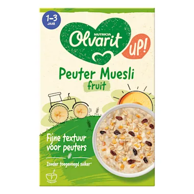 1. Verwarm 100 ml (dreumes- of peuter-) melk tot handwarme temperatuur. Giet de melk in een kom. 2. Voeg 35 gram (c.a. 5 eetlepels) muesli toe. 3. Roer goed door en laat de pap ongeveer 1-2 minuten staan voor de juiste structuur. Belangrijk: Blijf in de buurt en zorg dat je kindje rechtop zit tijdens het eten. Eet smakelijk!