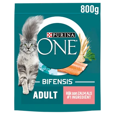 PURINA ONE® Adult kattenvoer Rijk aan Zalm is speciaal afgestemd op volwassen katten (van 1 jaar en ouder). PURINA ONE® kattenvoer is bereid met hoogwaardige ingrediënten, zoals zalm als nummer één ingrediënt, en cichorei, een prebioticum dat de balans van het darmmicrobioom verbetert. Het microbioom is een ecosysteem met biljoenen micro-organismen die in de darm leven en uniek zijn voor elke kat. De balans van micro-organismen is belangrijk om een positief effect te hebben op de spijsvertering, het afweersysteem en het algehele welzijn van jouw kat.