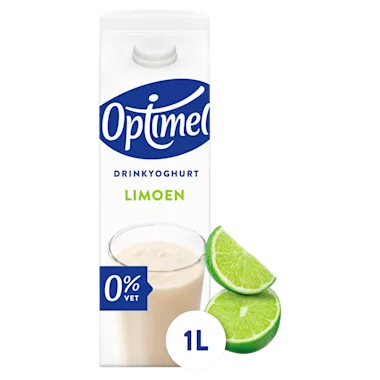 Magere drinkyoghurt met limoensap, gezoet met zoetstof.