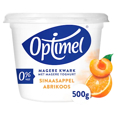 Ingrediënten: Magere KWARK, 28% magere YOGHURT, 6,6% vruchten (4% abrikoos, 1,6% sinaasappelsap, 1% abrikozensap), gemodificeerd maïszetmeel, citroensapconcentraat, aroma, wortelconcentraat, zoetstof: sucralose