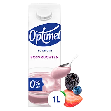 Magere yoghurt met bosvruchten, gezoet met zoetstof.