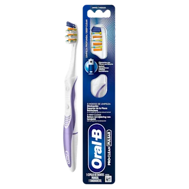 Geef je tanden een intense, superieure reiniging* met de ORAL-B PRO-CLEAN PULSAR tandenborstel. Deze batterij-aangedreven tandenborstel is ontworpen voor een precieze reiniging en maakt gebruik van 5-voudige verwijdering van tandplak met onder andere trillende borstelharen, een Power Tip, polijstkussentje en flexibele zijkanten die zich aanpassen aan de contouren van tanden en tandvlees. Kies voor een stralendere, schonere glimlach en zorg voor je mondgezondheid met ORAL-B, het meest gebruikte merk door tandartsen wereldwijd**.