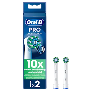 De Oral-B Pro Cross Action opzetborstel heeft meer dan 2200 borstelharen in een perfecte hoek om tot 100% meer bacteriële tandplak te verwijderen voor schonere tanden en gezonder tandvlees in vergelijking met een manuele tandenborstel. Echte Oral-B opzetborstels zijn ontworpen met nieuwe X-vormige borstelharen die reinigen op plaatsen waar ronde borstelharen niet bij kunnen. Dankzij de gebruiksindicator op de borstelkop veranderen borstelharen van groen naar geel om u te laten zien wanneer u hem moet vervangen om een 100% reinigende werking te behouden. Gegarandeerd geschikt voor Oral-B oplaadbare tandenborstels behalve Pulsonic en iO tandenborstels.
