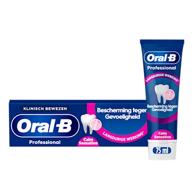 Oral-B Professional Bescherming tegen Gevoeligheid Calm Sensation is klinisch bewezen: het biedt langdurige werking om gevoelige tanden te beschermen. De unieke antibacteriële technologie van Oral-B met Tinfluoride-Complex en actieve kalmerende bestanddelen creëert een beschermschild voor het effectief beschermen van gevoelige tanden, ook tussen poetsbeurten. Geeft eenkamlerende sensatie tijdens en na het poetsen. Geschikt voor gevoelige tanden. Dagelijkse tandpasta