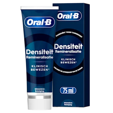 Oral-B Clinical Density Remineralization Intense Reiniging tandpasta verlengt de levensduur van de tanden. Herstelt actief calciumverlies. De unieke tinfluoride-complextechnologie van Oral-B biedt superieure bescherming tegen toekomstig glazuurverlies door voedingszuren in vergelijking met gewone fluoridetandpasta, zelfs tussen de poetsbeurten door. Het helpt bij tweemaal daags gebruik calciumverlies te herstellen door actief de tandglazuurdichtheid te verhogen op twee cruciale plaatsen: de tandglazuur-oppervlak en langs de tandvleesrand.