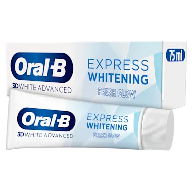 Oral-B 3DWhite Advanced Express Whitening tandpasta is uitgerust met de Oral-B whitening-technologie. De tandpasta maakt witter door oppervlakkige verkleuringen vanaf de eerste poetsbeurt te verminderen, verwijdert tot 100% van de oppervlakkige verkleuringen in 5 dagen en beschermt tanden tegen zuren en toekomstige oppervlakkige verkleuringen.