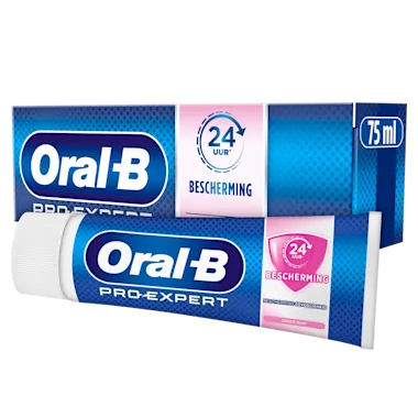 Oral-B Pro-Expert Bescherming Gevoelige Tanden biedt 24 uur bescherming tegen tandplak bij twee keer per dag poetsen. Richt zich op en beschermt de 8 punten die tandartsen het meest controleren: tandvleesproblemen, gevoeligheid, gaatjes, tandplak, verkleuringen, slechte adem, tandsteen en erosie van het tandglazuur.