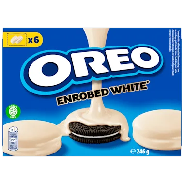 OREO! Maar dan heerlijk omhuld met witte chocoladesmaak. Onweerstaanbaar lekker!