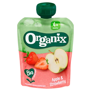 Een 100% biologisch fruithapje met aardbei en appel in een handig knijpzakje. Het perfecte tussendoortje voor baby’s vanaf 4 maanden. Een fruitig eerste hapje voor je baby als hij/zij hieraan toe is.