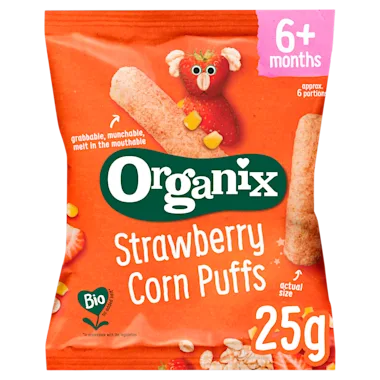 De Organix Strawberry Corn Puffs zijn een ideaal babysnackje voor in de middag of avond. Daarnaast is het ook een lekkere en verantwoorde snack om uit te delen als traktatie!