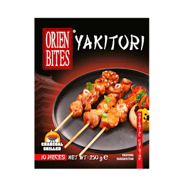 Yakitori kan letterlijk vertaald worden naar "gegrilde kip“. Komend van de Japanse woorden yaki (grill) en tori (kip). De OrienBites Yakitori bestaat uit heerlijke stukjes gemarineerde kippendijenvlees, geglaceerd met een zoetzure sojasaus en geserveerd op een stokje.