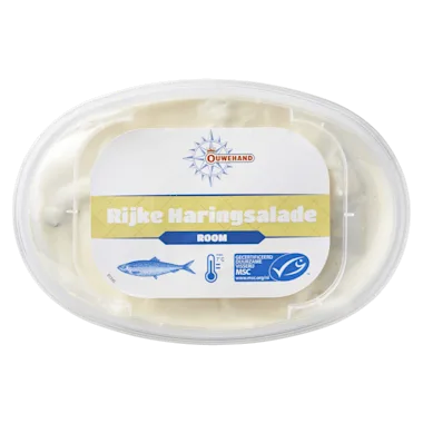 Ingrediënten: HARING (50%), raapolie, water, suiker, ROOM (7%), ui, invertsuikerstroop, zout, augurk, natuurazijn, azijn, ROOMYOGHURT, EIGEELPOEDER, appel, voedingszuur: melkzuur, citroenzuur, MELKEIWIT, magere MELKPOEDER, conserveermiddel: kaliumsorbaat, E223, verdikkingsmiddel: carrageen, guarpitmeel, MOSTERDZAAD, gedroogde glucose siroop, tapiocazetmeel, natuurlijk aroma (MOSTERD), specerijen: kurkuma.