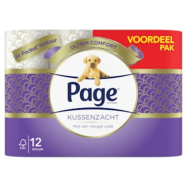Page wil dat je jezelf elke dag schoon en zelfverzekerd voelt. Page Kussenzacht toiletpapier is speciaal ontworpen voor ultiem comfort en is verrijkt met zijde. De heerlijk dikke, superzachte velletjes wc papier met unieke Air Pocket™-textuur zijn zacht voor de huid en voor een comfortabele reiniging als nooit tevoren. De nieuwe Air Pocket™ textuur absorbeert druk beter wat zorgt voor ultiem comfort en zachtheid. De verpakking is 100% recyclebaar en is gemaakt van 30% gerecycled plastic. Gebruik Page vochtig toiletpapier na Page wc papier voor een schoon gevoel, de hele dag.