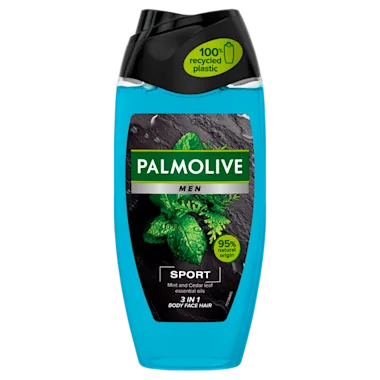 Voel je tijdens elke douche verbonden met de natuur en beleef de frisse geur van Palmolive Men 3-in-1 Sport douchegel. Onze douchegel voor mannen is geïnspireerd door de natuur en bevat 100% natuurlijke etherische oliën, munt- en cedernaaldolie voor een douche waar je van opknapt. Bovendien reinigt onze douchegel voor mannen je lichaam, gezicht en haar, dus je hebt maar één product nodig. Deze body wash voor mannen heeft een zachte, dermatologisch geteste formule en is pH-neutraal, waardoor je huid zich er ook goed bij voelt. Omdat wij geloven in eenvoud, zijn de ingrediënten van onze douchegel voor mannen voor 95% van natuurlijke oorsprong*. Zo voel je je dichter bij de natuur terwijl je een douche neemt waar je van opknapt.