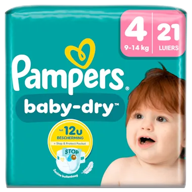Ontdek Pampers Baby-Dry luiers die speciaal ontwikkeld zijn om al je baby's bewegingen aan te kunnen, en tot 100% lekvrije en comfortabele nachten te bieden. Dankzij hun verbeterde absorptievermogen houden deze luiers snel het vocht vast, zodat je baby lang droog blijft. Bovendien helpt de Stop & Protect pocket lekken aan de achterkant van de luier te voorkomen. Onze Baby-Dry luiers zijn gemaakt van hoogwaardige materialen en omhullen de huid van je baby in alle zachtheid. Bij Pampers is de veiligheid van je baby onze hoogste prioriteit. Daarom ondergaan onze Baby-Dry luiers strenge dermatologische testen, zijn ze vrij van EU-parfumallergenen zoals gereglementeerd in de EU-regelgeving voor cosmetica nr. 1223/2009. We zijn ook Standard 100 gecertificeerd door OEKO-TEX, wat je verzekert van hun kwaliteit en veiligheid. Dit alles zodat je lekken vaarwel kunt zeggen en ongestoorde comfortabele nachten kunt verwelkomen. Wil je weten wat de bestanddelen zijn van Pampers producten? Bezoek Pampers.nl