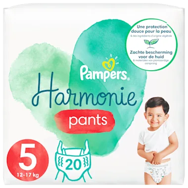 Zachte huidbescherming. Met materialen van plantaardige oorsprong. Pampers Harmonie pants luierbroekjes zijn gemaakt met zachte plantaardige materialen, ze zijn hypoallergeen*, dermatologisch getest en zacht voor de huid van je baby. Ze bevatten geen parfum, lotion en geen enkele van de 26 EU allergenen en garanderen tot 12 uur droogheid van Pampers, zodat elke ouder er zeker van is op de Pampers kwaliteit te kunnen rekenen. Dankzij hun 360° rekbare tailleband zijn ze gemakkelijk te verwisselen, zelfs als je niet wil stilliggen. Ze hebben schattige prints en een handige Pampers urine-indicator: jij en je baby zullen er helemaal weg van zijn. Deze luierbroekjes worden ook gemaakt met verantwoord geproduceerde cellulose en zijn gecertificeerd door het onafhankelijk label Standard 100 van Oeko-Tex, een van de meest veeleisende certificeringen ter wereld. Wil je weten wat de bestanddelen zijn van Pampers producten? Bezoek Pampers.nl*ontworpen om het risico op allergieën te beperken.