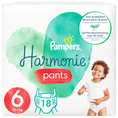 Zachte huidbescherming. Met materialen van plantaardige oorsprong. Pampers Harmonie pants luierbroekjes zijn gemaakt met zachte plantaardige materialen, ze zijn hypoallergeen*, dermatologisch getest en zacht voor de huid van je baby. Ze bevatten geen parfum, lotion en geen enkele van de 26 EU allergenen en garanderen tot 12 uur droogheid van Pampers, zodat elke ouder er zeker van is op de Pampers kwaliteit te kunnen rekenen. Dankzij hun 360° rekbare tailleband zijn ze gemakkelijk te verwisselen, zelfs als je niet wil stilliggen. Ze hebben schattige prints en een handige Pampers urine-indicator: jij en je baby zullen er helemaal weg van zijn. Deze luierbroekjes worden ook gemaakt met verantwoord geproduceerde cellulose en zijn gecertificeerd door het onafhankelijk label Standard 100 van Oeko-Tex, een van de meest veeleisende certificeringen ter wereld. Wil je weten wat de bestanddelen zijn van Pampers producten? Bezoek Pampers.nl*ontworpen om het risico op allergieën te beperken.