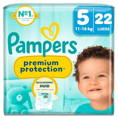 Dubbele bescherming: voor de huid en tegen lekken. Pampers beste comfort en bescherming van de gevoelige huid - getest en goedgekeurd door baby's. Pampers N°1 luiers voor comfort en bescherming van de gevoelige huid - getest en goedgekeurd door baby's! En ze zijn ook onze N°1 in bescherming tegen lekken. Pampers Premium Protection luiers bieden de beste bescherming van Pampers, dankzij 1) onmiddellijke absorptie - met miljoenen absorberende micro-poriën die urine en ontlasting onmiddellijk weghouden van de huid en in de kern van de luier vasthouden. En zo de gevoelige huid van je baby droog en beschermd houdt. 2) een Stop & Protect pocket om lekken aan de achterkant te voorkomen. 3) ultrazachte materialen die de huid van je baby in een wolk hullen van comfort en bescherming. en 4) onze unieke Comfort Fit technologie met een systeem van overlappende plakstrips en navelvriendelijke uitsparing. Pampers Premium Protection, de N°1 keuze van de kraamafdelingen in Nederland, zijn 100% veilig voor de huid van je baby. Ze zijn dermatologisch getest en bevatten geen van de EU-parfumallergenen (zoals gereglementeerd in de EU-regelgeving voor cosmetica, nr. 1223/2009). Geen wonder dat baby's ze goedkeuren!