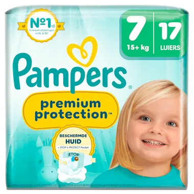 Dubbele bescherming: voor de huid en tegen lekken. Pampers beste comfort en bescherming van de gevoelige huid - getest en goedgekeurd door baby's. Pampers N°1 luiers voor comfort en bescherming van de gevoelige huid - getest en goedgekeurd door baby's! En ze zijn ook onze N°1 in bescherming tegen lekken. Pampers Premium Protection luiers bieden de beste bescherming van Pampers, dankzij 1) onmiddellijke absorptie - met miljoenen absorberende micro-poriën die urine en ontlasting onmiddellijk weghouden van de huid en in de kern van de luier vasthouden. En zo de gevoelige huid van je baby droog en beschermd houdt. 2) een Stop & Protect pocket om lekken aan de achterkant te voorkomen. 3) ultrazachte materialen die de huid van je baby in een wolk hullen van comfort en bescherming. en 4) onze unieke Comfort Fit technologie met een systeem van overlappende plakstrips en navelvriendelijke uitsparing. Pampers Premium Protection, de N°1 keuze van de kraamafdelingen in Nederland, zijn 100% veilig voor de huid van je baby. Ze zijn dermatologisch getest en bevatten geen van de EU-parfumallergenen (zoals gereglementeerd in de EU-regelgeving voor cosmetica, nr. 1223/2009). Geen wonder dat baby's ze goedkeuren!