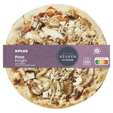 Pizzabodem met tomatenpassata (TARWEBLOEM, water, tomatenpassata, pomace olijfolie, zout, gist, meelverbeteraar: E300, zuurteregelaar: citroenzuur), mozzarella (gepasteuriseerde MELK, aardappelzetmeel, zout, zuursel, stremsel), champignons, mascarpone (gepasteuriseerde room (MELK), zuurteregelaar: citroenzuur), oesterzwammen, truffeltapenade (champignons, water, olijfolie, zonnebloemolie, zomertruffel, zout, aroma's, Grana Padano kaas (MELK, zout, stremsel, conserveringsmiddel: E1105 (EI)), peterselie, eekhoorntjesbrood, knoflook, citroensap, maiszetmeel, zwarte peper), tijm.Vegetarisch? Nee.Veganistisch? Nee.