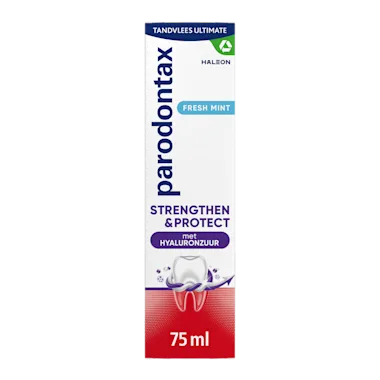 parodontax Tandpasta Strengthen & Protect Fresh Mint is verrijkt met hyaluronzuur - een belangrijke bouwsteen van sterk tandvlees.