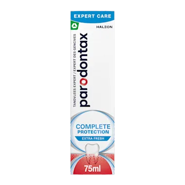 De tandpasta heeft acht voordelen voor gezond tandvlees en sterke tanden. Deze tandpasta is vier keer effectiever in het verwijderen van tandplak* en helpt je te zorgen voor gezond tandvlees, het voorkomen van een slechte adem en het in standhouden van de aansluiting tussen je tanden en tandvlees. br br Daarnaast zorgt Complete Protection tandpasta voor een diepe reiniging tussen je tanden en maakt schoon voor een fris gevoel. Parodontax Complete Protection tandpasta zorgt met fluoride voor sterker tandglazuur. br br strong De voordelen van Parodontax Complete Protection Extra Fresh Tandpasta: /strong br - Heeft 8 voordelen voor gezond tandvlees br - Helpt tegen en voorkomt bloedend tandvlees br - 4 keer effectievere tandpasta* in het verwijderen van tandplakbacteriën br - Dagelijkse natriumbicarbonaat en fluoride tandpasta voor gezond tandvlees br - Met fluoride voor sterker tandglazuur br br *de voornaamste oorzaak van tandvleesproblemen, vergeleken met een gewone tandpasta, bij 2 keer per dag poetsen, na 6 maanden gebruik.