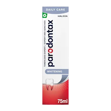 Parodontax Whitening tandpasta biedt dagelijkse reiniging en helpt de natuurlijke witheid van tanden te behouden door het voorzichtig verwijderen van oppervlakkige vlekken. Parodontax Whitening tandpasta is ontwikkeld om tandplak te verwijderen. Het werkt doordat deze tandpasta de opbouw van tandplak tegengaat. Parodontax tandpasta bevat fluoride, en is dus geschikt voor dagelijks gebruik, en helpt je tandvlees gezond en tanden sterk te houden. Nu met verbeterde smaak.