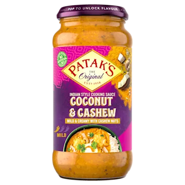 CASHEWNOTEN (3%), gedroogde ui, gemodificeerd maïszetmeel, suiker, kokosnootcrème, geconcentreerde tomatenpuree, specerijen (1%) (specerijen, venkel (0,2%), kurkuma (<lt/>0,1%)), raapzaadolie, knoflookpuree, zout, wei-eiwitconcentraat (MELK), voedingszuren (azijnzuur, citroenzuur), paprika-extract, chilivlokken, gedroogd korianderblad. Allergeneninformatie: voor allergenen zie VETGEDRUKTE ingrediënten. Kan ook pinda's en andere noten bevatten.