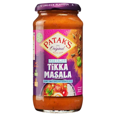 Tikka Masala saus op basis van tomaat en room met koriander en komijn.