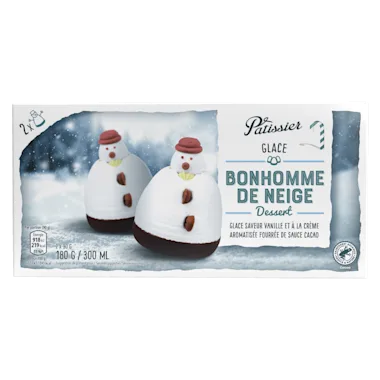Sneeuwmannetjes. Roomijs met vanillesmaak en saus met chocoladesmaak