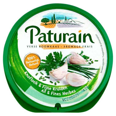 Ingrediënten: gepasteuriseerde melk en room, knoflook en fijne kruiden (2,6%), zout, peper.